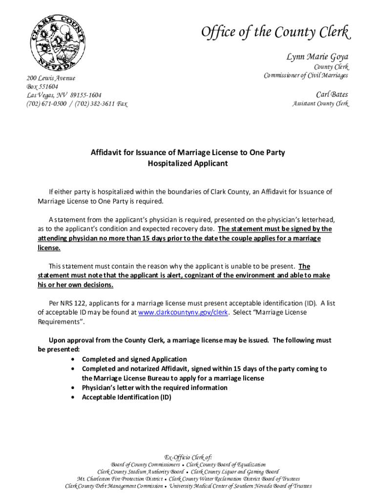 Get the free Affidavit for Issuance of Marriage License to One Party