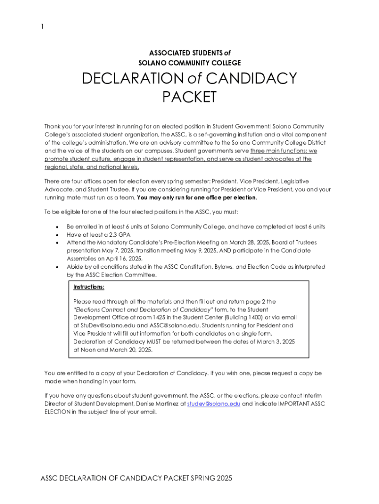 Every student interested in running for an ASSC position must fill out this form. Typically, candidates must meet specific eligibility criteria based on factors such as academic standing and enrollment status.