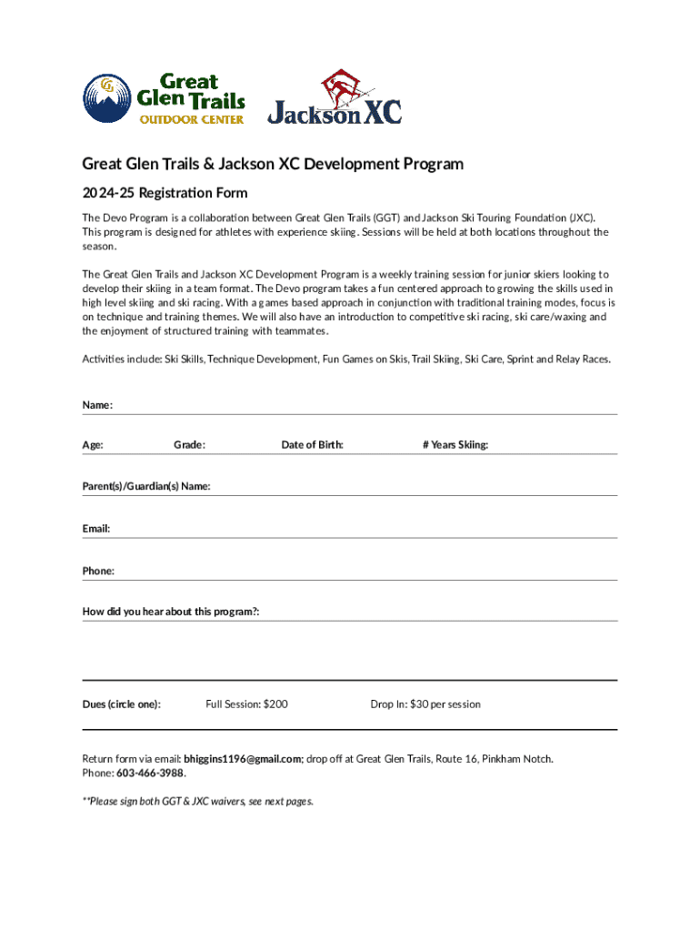 Get the free Great Glen Trails & Jackson Xc Development Program 2024-25 Registration Form