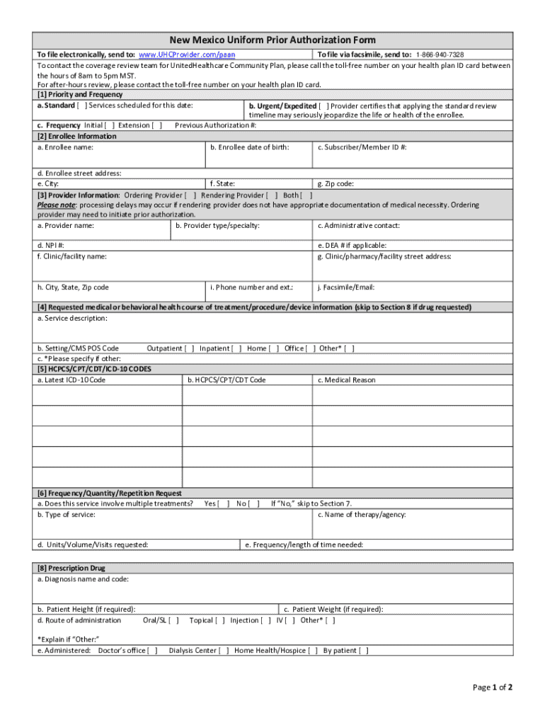 Get the free New Mexico Uniform Prior Authorization Form
