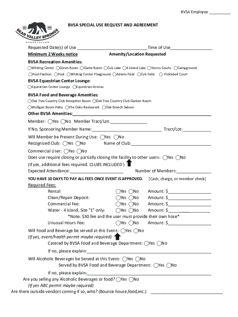 Before diving into the intricacies of the BVSA Special Use Request Form, it's essential to gather all necessary documents and information. This preparation not only ensures a smoother completion process but also reduces the chances of delays. Key documents typically include proof of identity, proof of property ownership (if applicable), and any previous correspondence regarding similar requests.