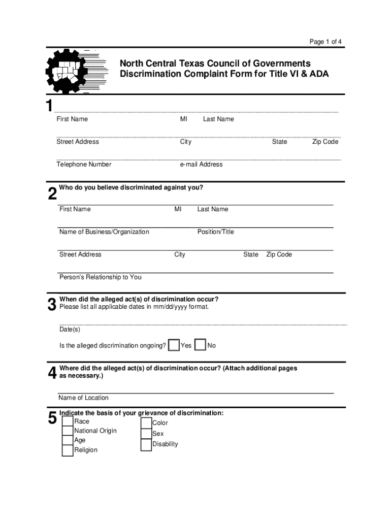 Get the free North Central Texas Council of Governments Title Vi Complaint Procedures