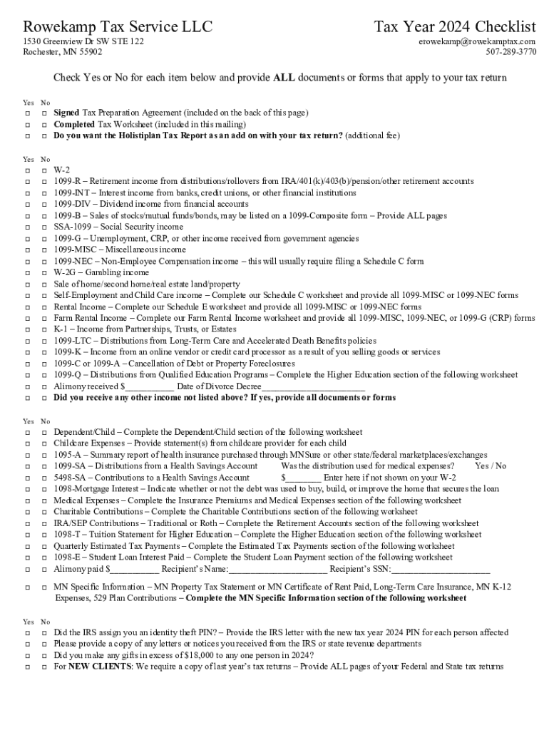 Tax Year 2024 Checklist Form: Your Complete Guide