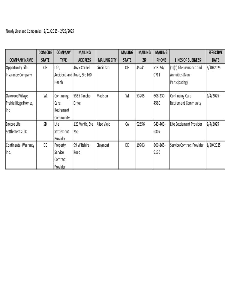 Get the free Newly Licensed Companies, Name Changes, Change of Domicile, Liquidations - oci wi