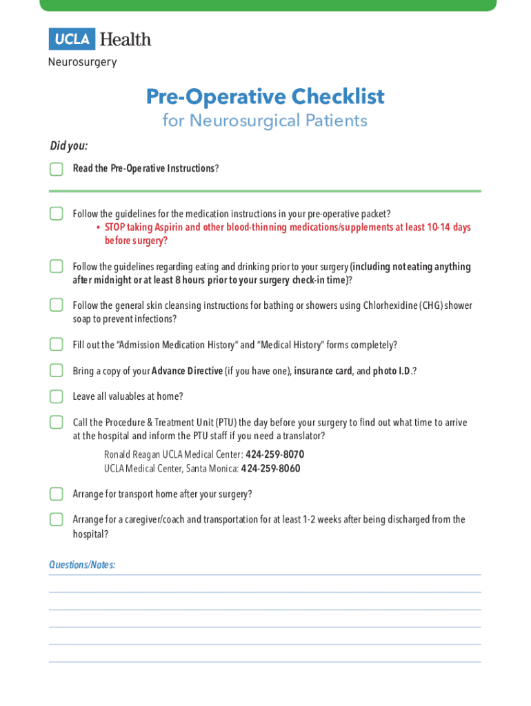 Get the free Pre-operative Checklist for Neurosurgical Patients