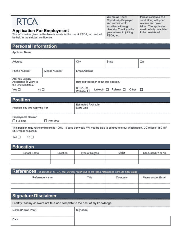 Filling out an application for employment form requires careful preparation. Start by gathering necessary documents to provide accurate information. Include your resume and a list of references if required by the employer. Familiarize yourself with the job description and tailor the application to meet the specific requirements.
