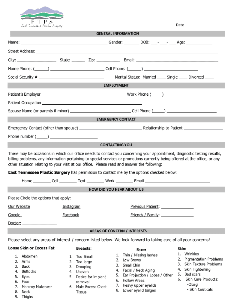 Get the free Patient Information - Pediatric Plastic and Reconstructive ...