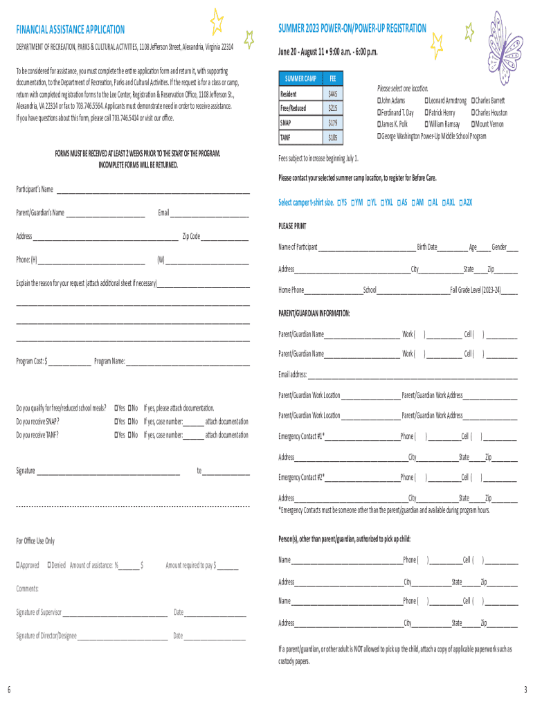 VA Summer Out of School Time Program Packet - City of Alexandria 2023 free printable template