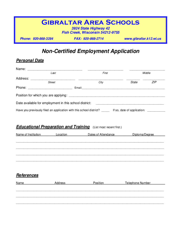 Before filling out your non-certified employment application form, gather all necessary documents and information. This includes your resume, previous employment details, and educational qualifications. Taking the time to prepare ensures that you won’t miss any important information while completing the form.