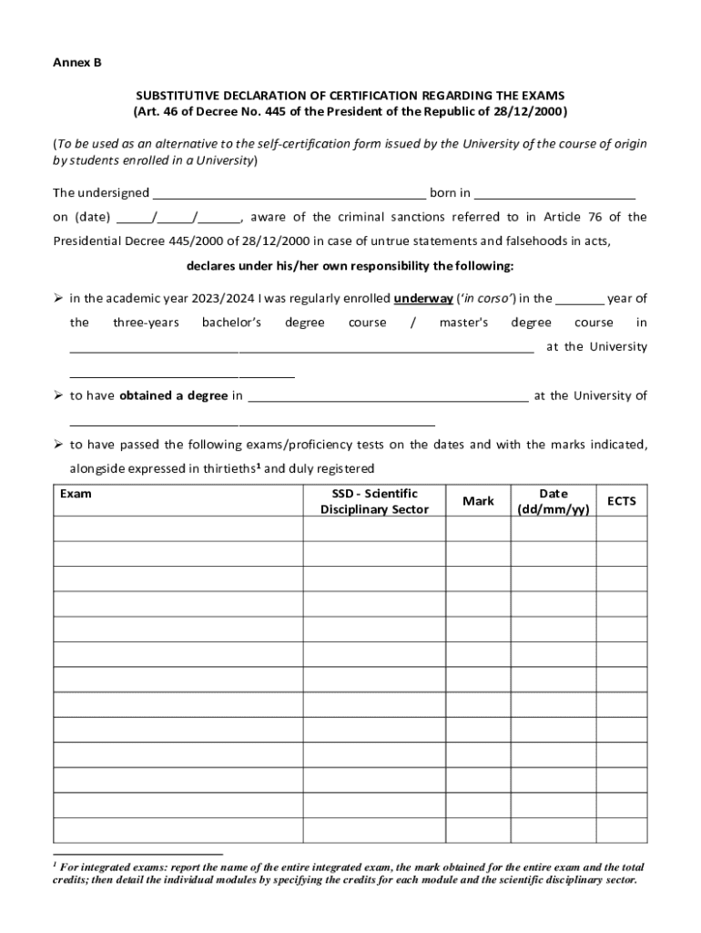 The Annex B Form comprises several sections that collectively capture all necessary information pertinent to its purpose. Understanding these sections is critical for anyone involved in completing the form. The key areas include identification details, financial disclosures, and certification of accuracy, all aimed at providing a comprehensive overview of the information being submitted.