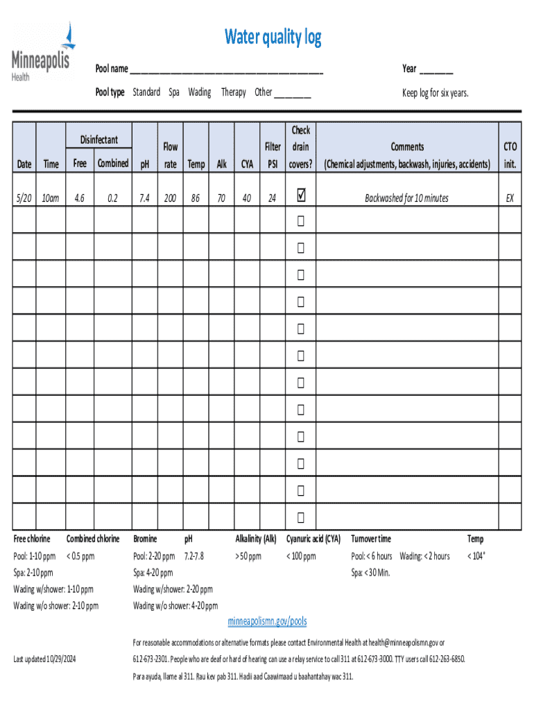 A water quality log form is a structured document designed for recording water quality data over time. Its primary purpose is to ensure that accurate and consistent information is gathered during water testing procedures. This documentation plays a critical role in compliance with environmental regulations, ensuring safety, and facilitating informed decision-making.