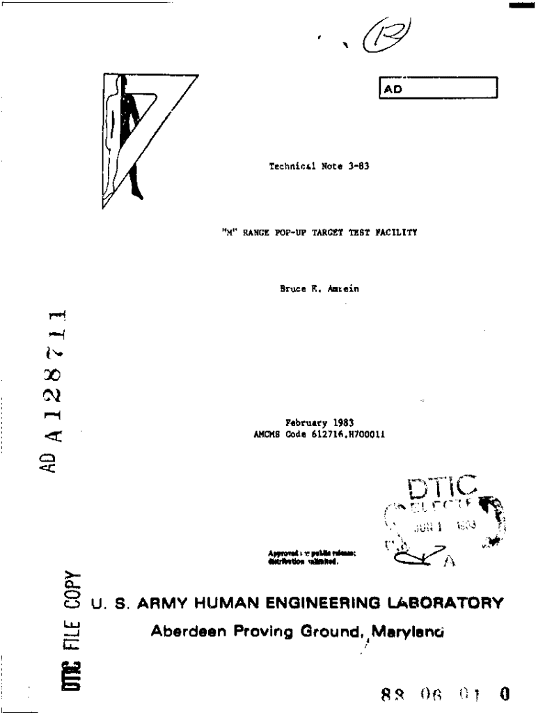 This document describes the fully instrumented and computer-controlled pop-up target test facility developed by the U.S. Army Human Engineering Laboratory for evaluating small arms weapons and soldier