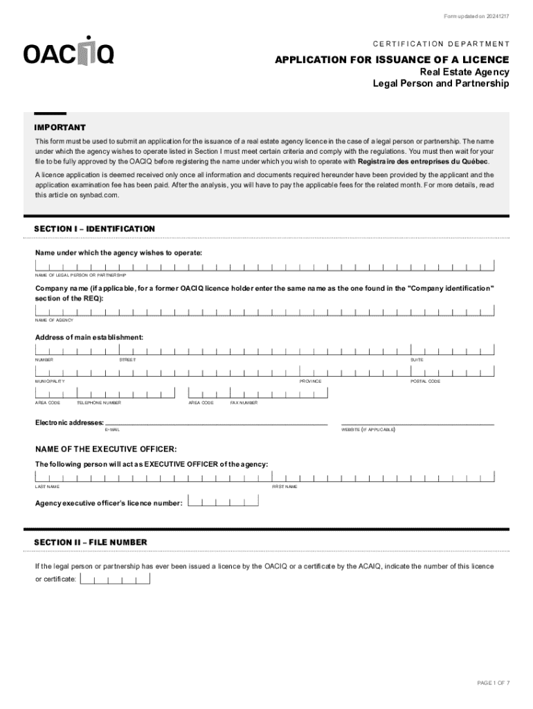 Get the free Application for Issuance of a Licence - Real Estate Agency - Legal Person and Partne...