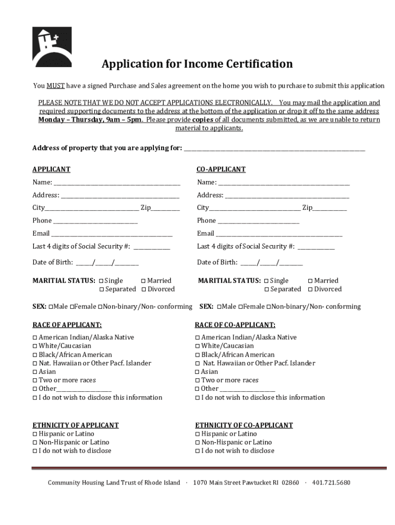 Get the free Application for Income Certification