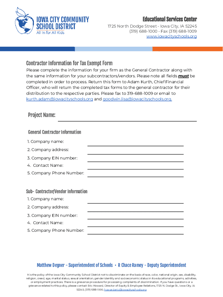 Get the free Tax Exempt Form for Contractors