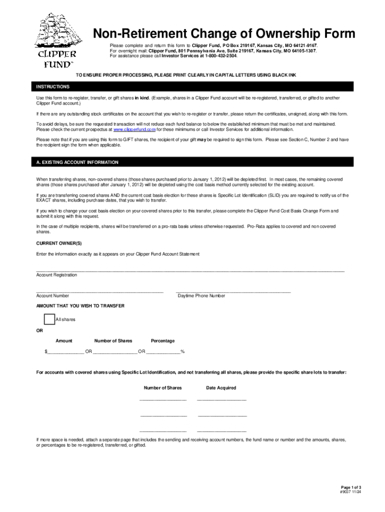 Filling out a non-retirement change of ownership form requires attention to detail to ensure accuracy. The process can be broken down into several sections.