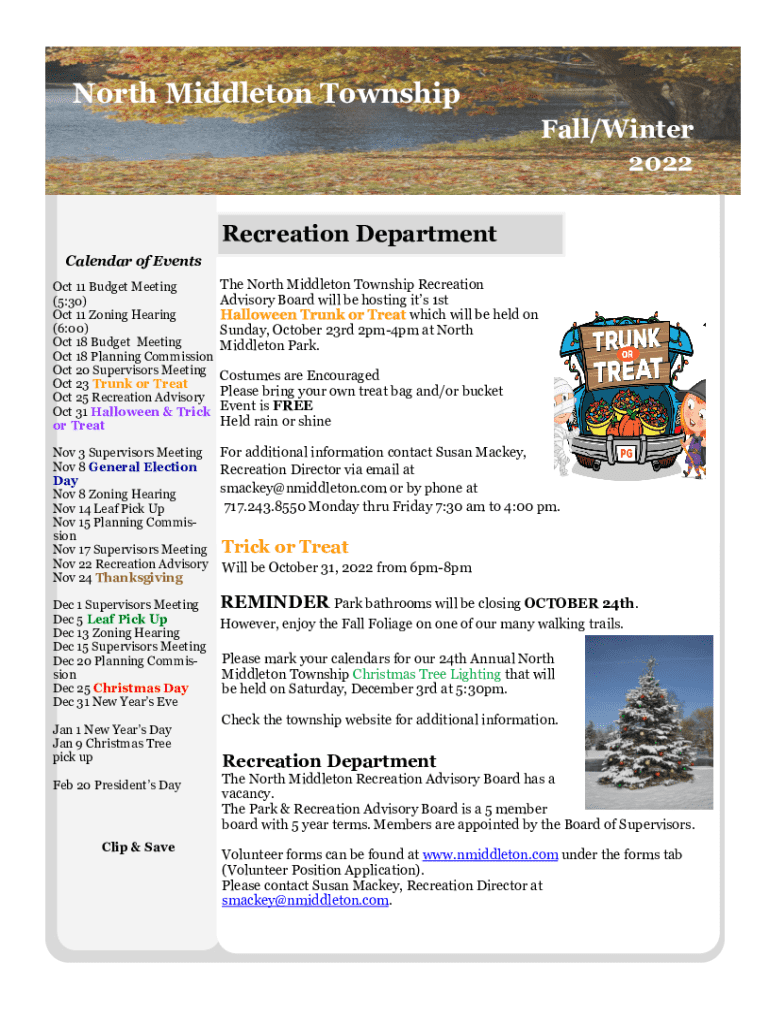 Get the free North Middleton Township Recreation Department Calendar of Events