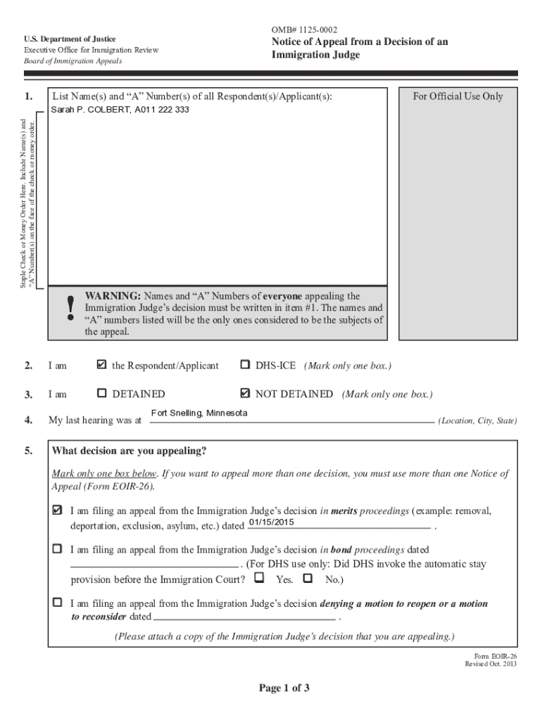 Get the free Notice of Appeal From a Decision of an Immigration Judge