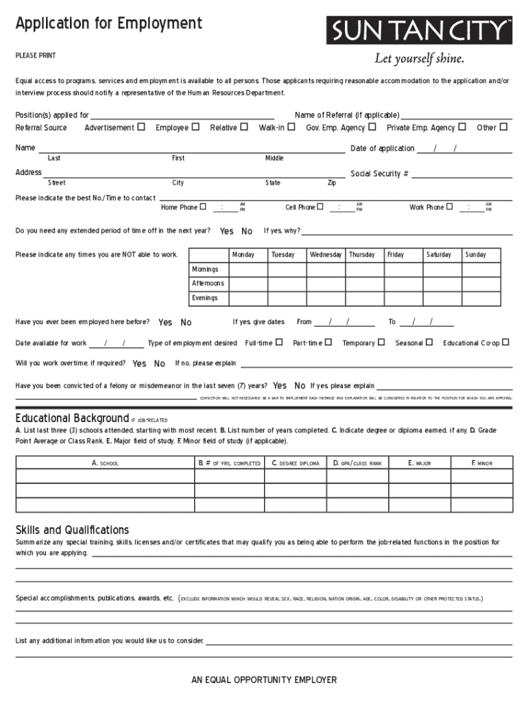 Employment application forms are essential documents used by employers to collect necessary information about candidates. These forms are not only tools for employers to assess potential hires but also serve as a way for candidates to present their qualifications, experience, and skills in a structured manner. An effectively completed application is crucial for making a good first impression.