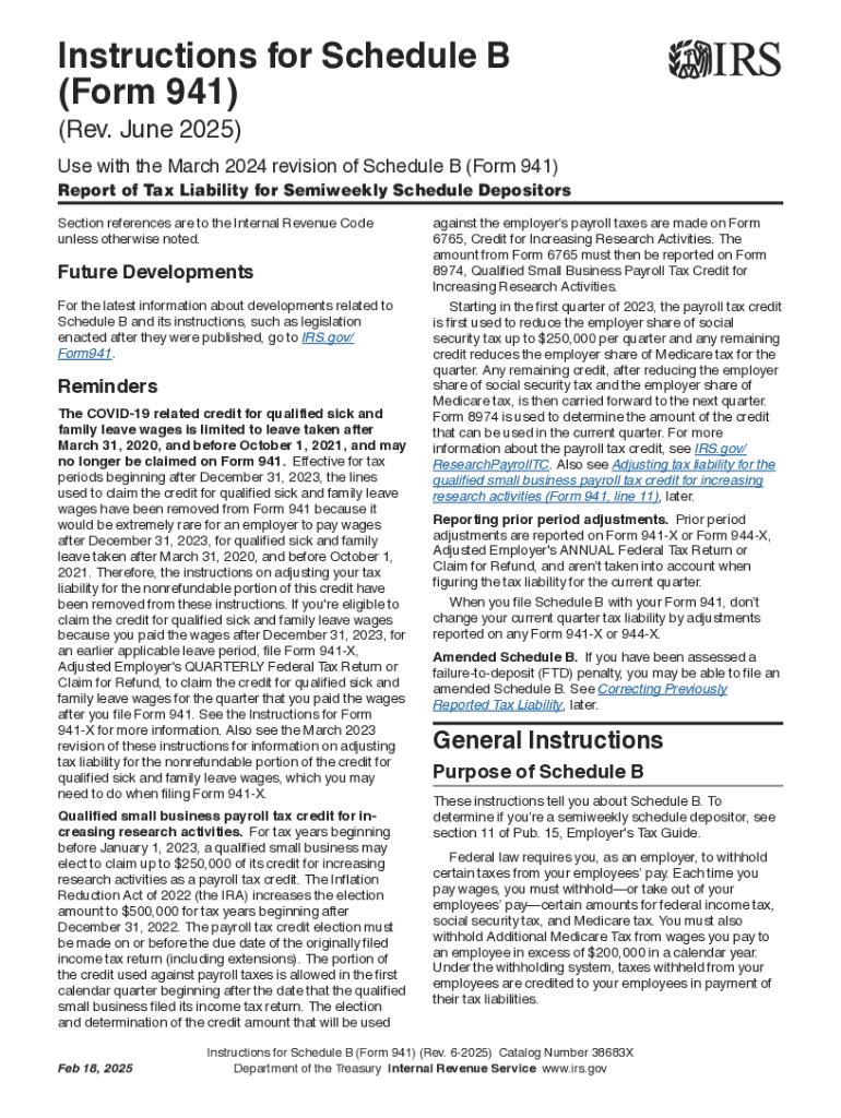 IRS Instructions 941 - Schedule B 2025 free printable template