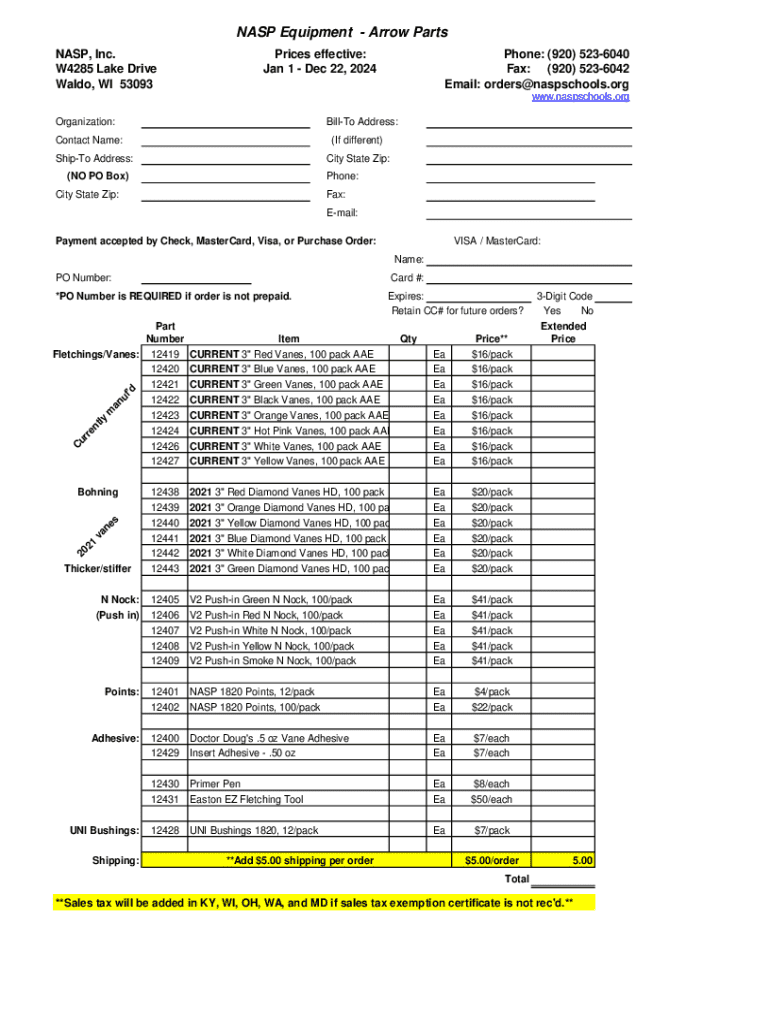 Key elements to include in the arrow form emphasize ordering accuracy. The form captures essential attributes such as the quantity of arrows needed, the type (youth, adult, beginner), and color options to help archers personalize their equipment. Each section plays a vital role in ensuring that the equipment aligns with both the needs of the participants and the requirements set forth by NASP.