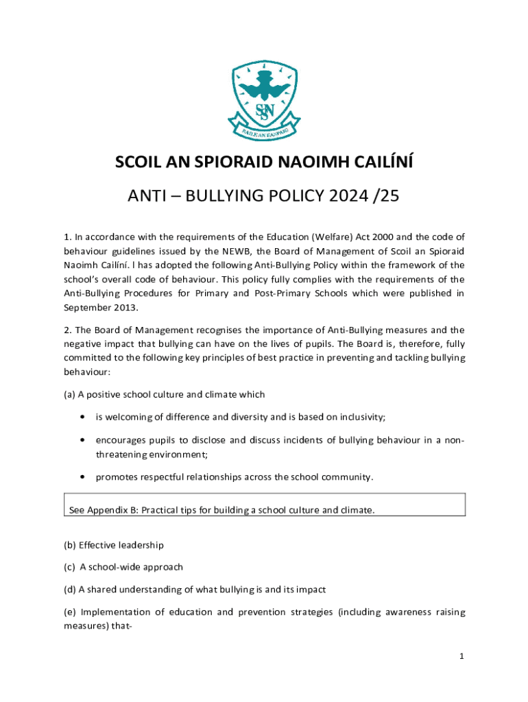 Get the free Anti – Bullying Policy 2024 /25