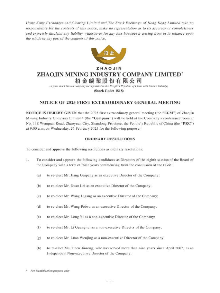 Get the free Notice of 2025 First Extraordinary General Meeting