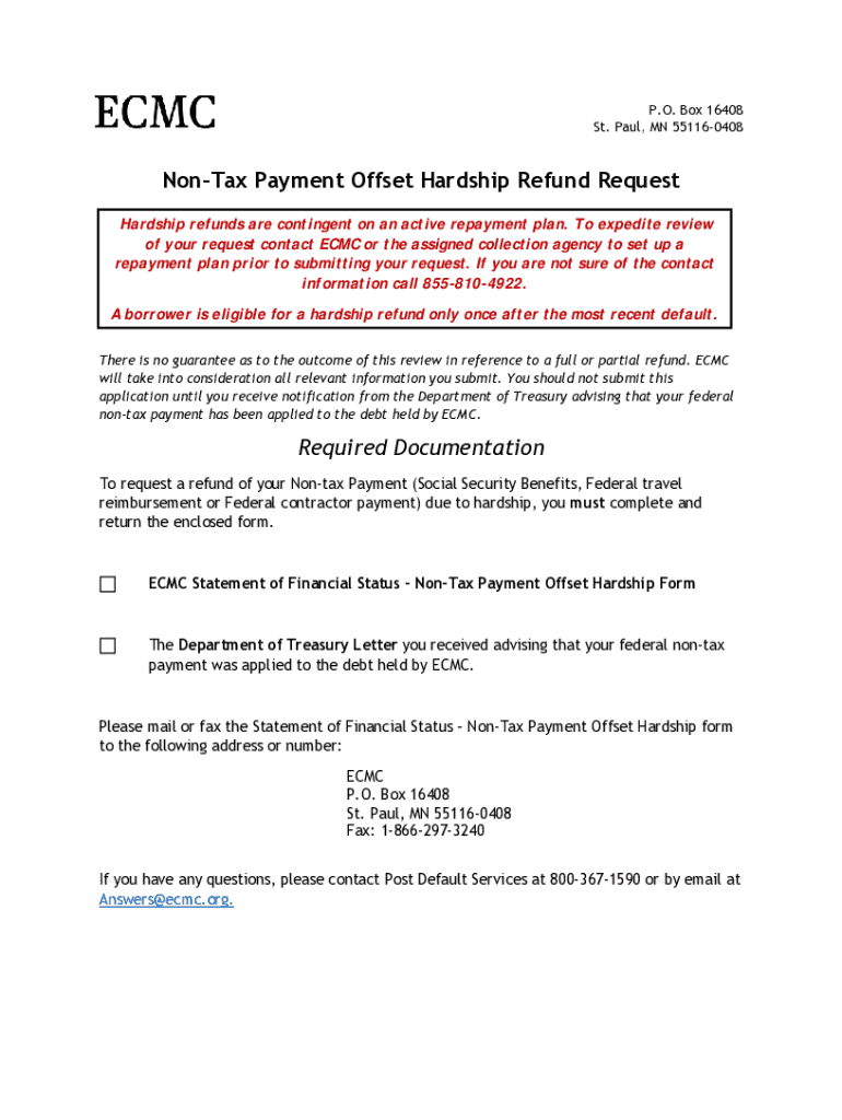 Get the free Non-tax Payment Offset Hardship Refund Request