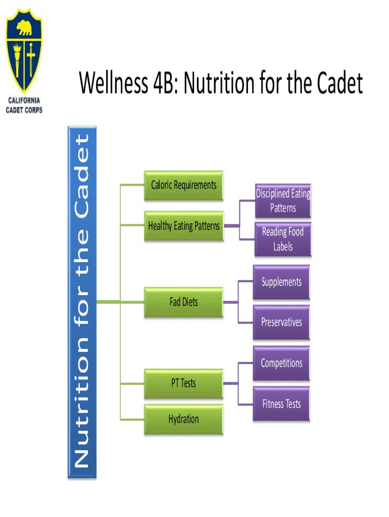 Nutrition is often seen as a foundation for good health and athletic performance. It encompasses the intake of food and its utilization by the body for energy, growth, and maintenance. A cadet's performance—both physically and mentally—can hinge significantly on their nutritional choices, impacting everything from training outcomes to cognitive clarity during demanding situations.