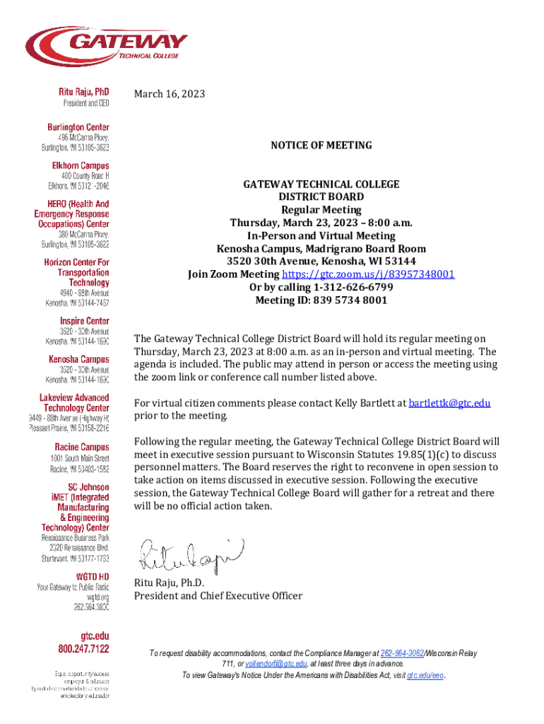 Get the free Notice of Meeting