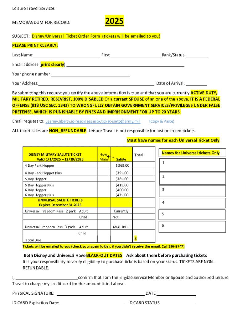 Get the free Disney/universal Ticket Order Form