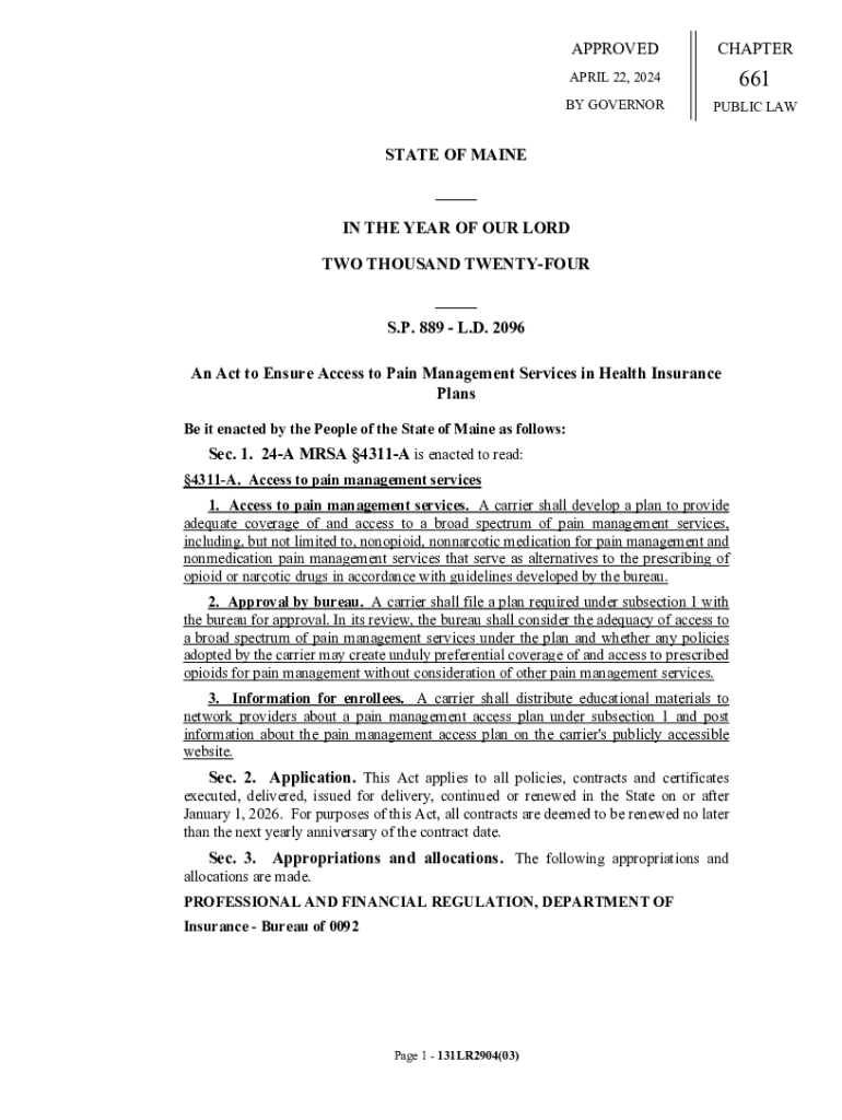 Get the free Title 24-A, 4311-A: Access to pain management services - legislature maine