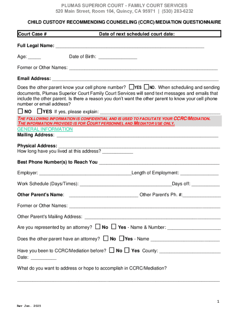 To initiate child custody recommending counseling, specific forms must be completed and submitted. The two primary documents required include the Child Custody Recommending Counseling Questionnaire (RI-PR091) and the Petition for Private Child Custody Recommending Counseling (FL-E-LP-601).