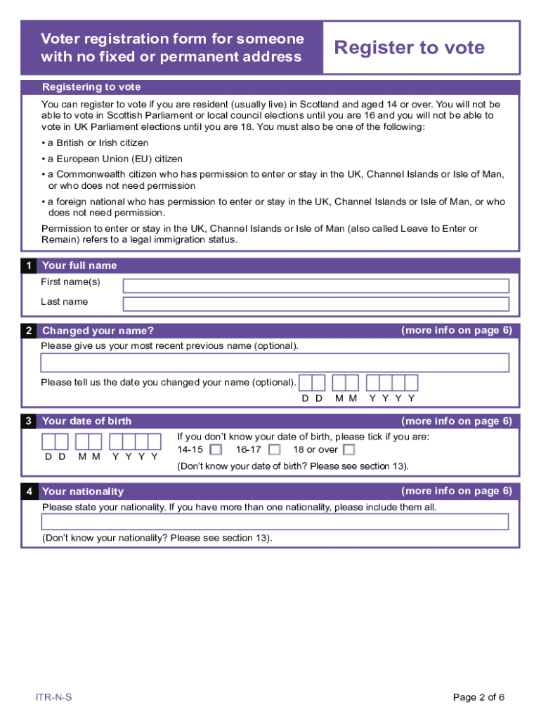 Get the free Voter Registration Form for Someone With No Fixed or Permanent Address