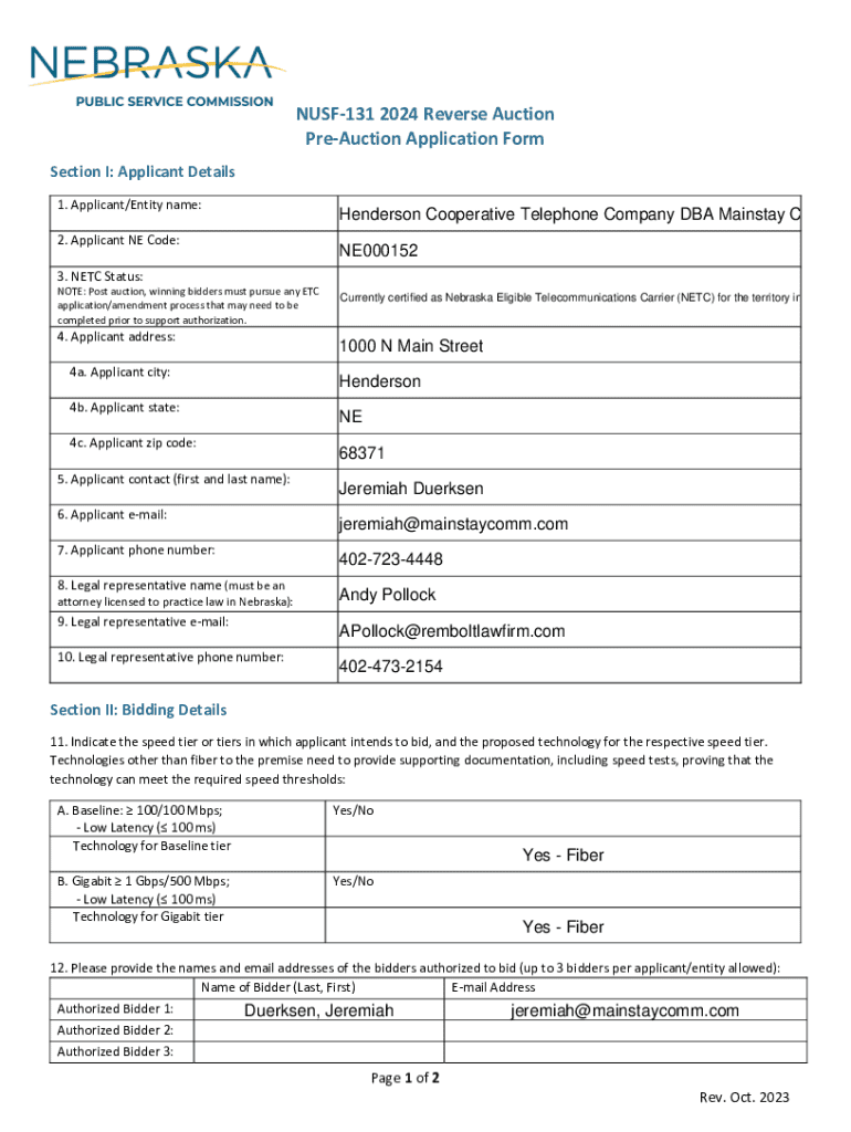 Get the free Nusf-131 2024 Reverse Auction Pre-auction Application Form - psc nebraska