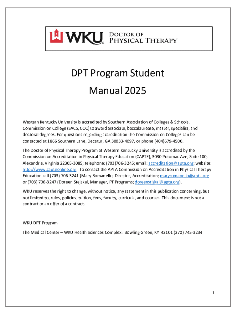 Get the free Dpt Program Student Manual 2025