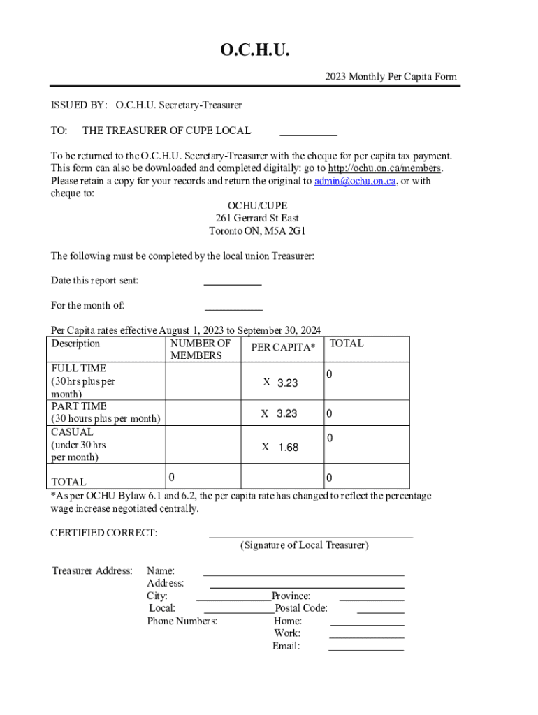 Get the free O.c.h.u. 2023 Monthly Per Capita Form - ochu on