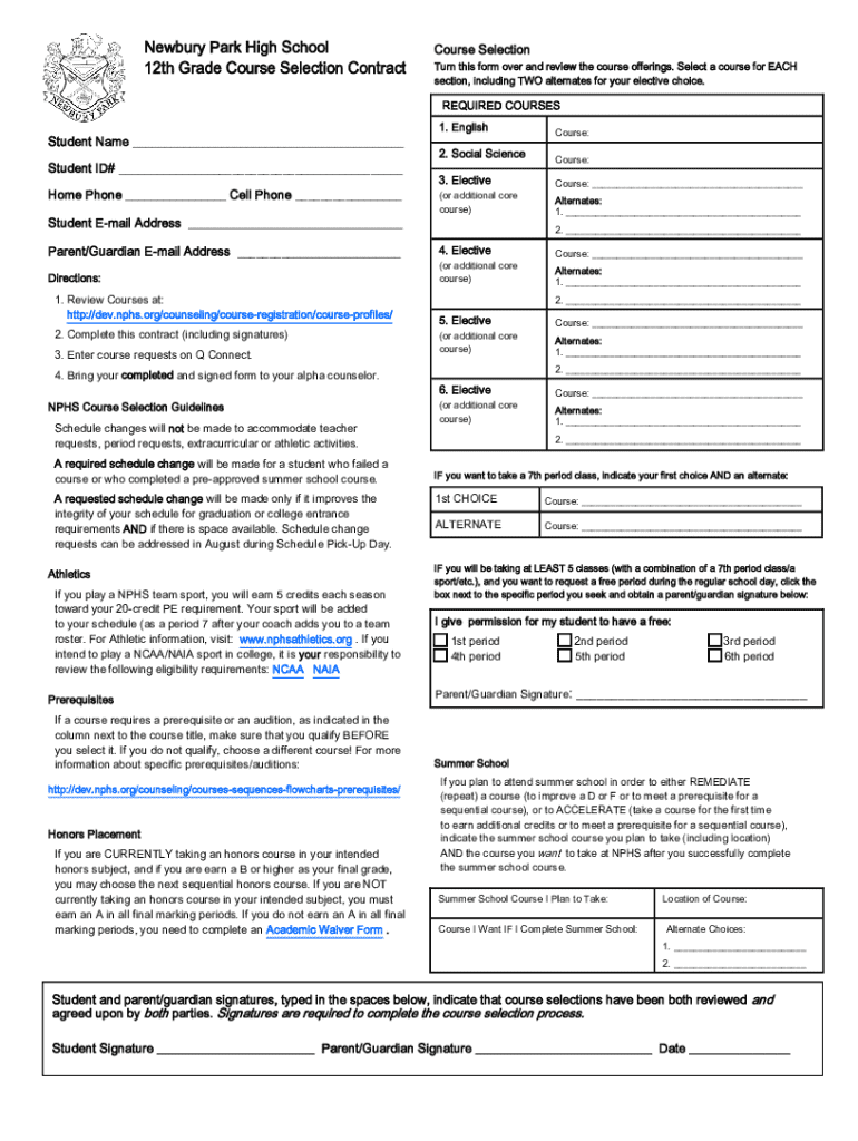 Get the free Newbury Park High School 12th Grade Course Selection Contract