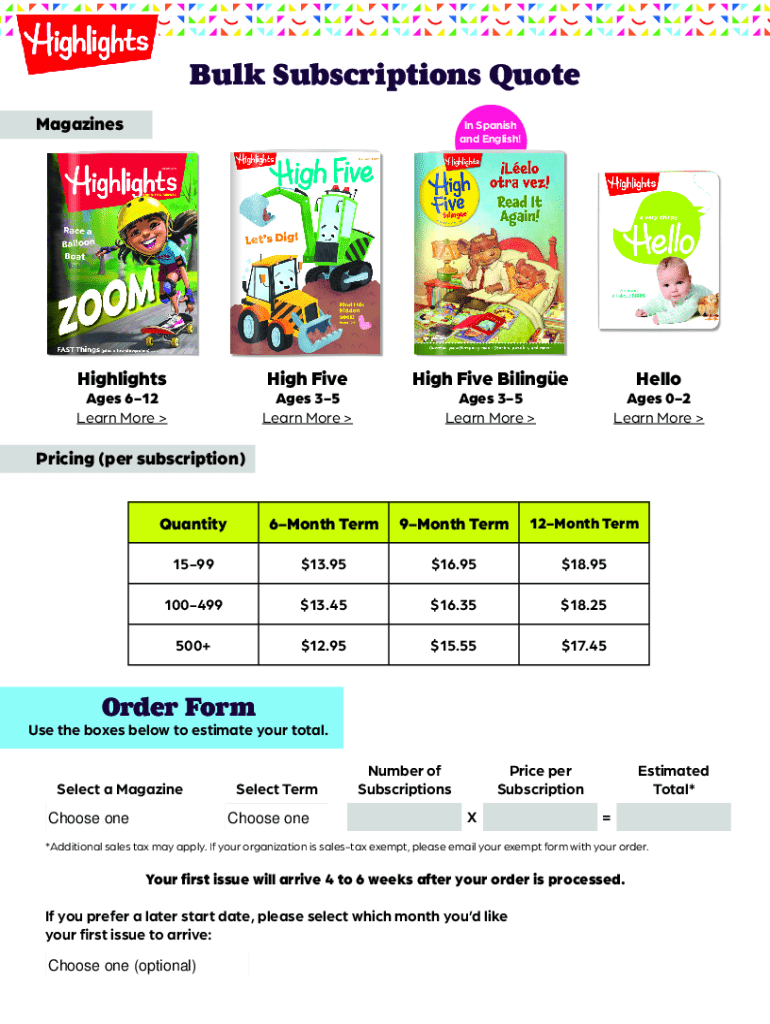 Get the free Bulk Subscriptions Quote