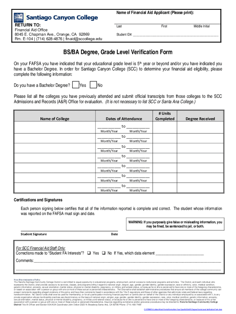 Get the free Bs/ba Degree, Grade Level Verification Form