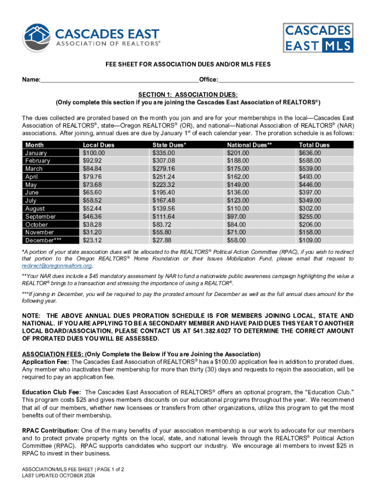 Get the free Cascades East Association of Realtors® Fee Sheet