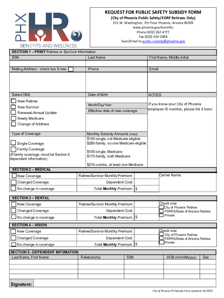 Get the free Request for Public Safety Subsidy Form
