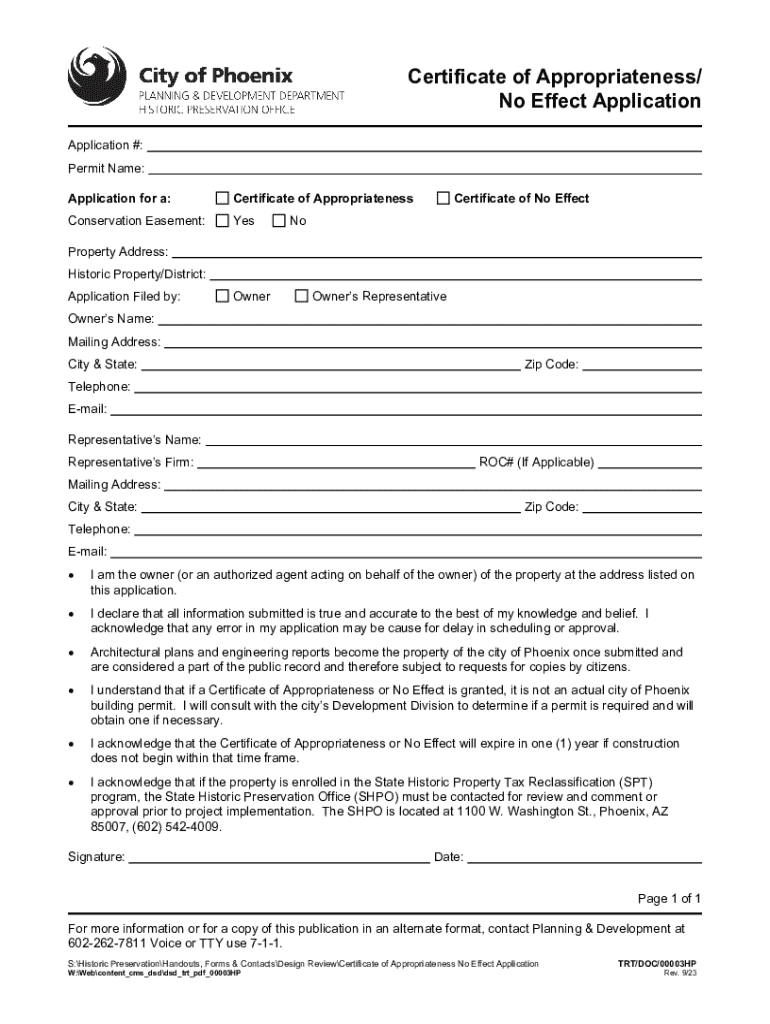Get the free Certificate of Appropriateness/ No Effect Application