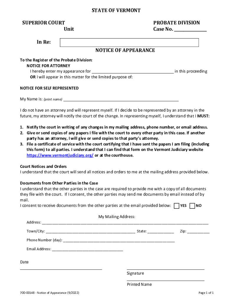 Get the free Notice of Appearance