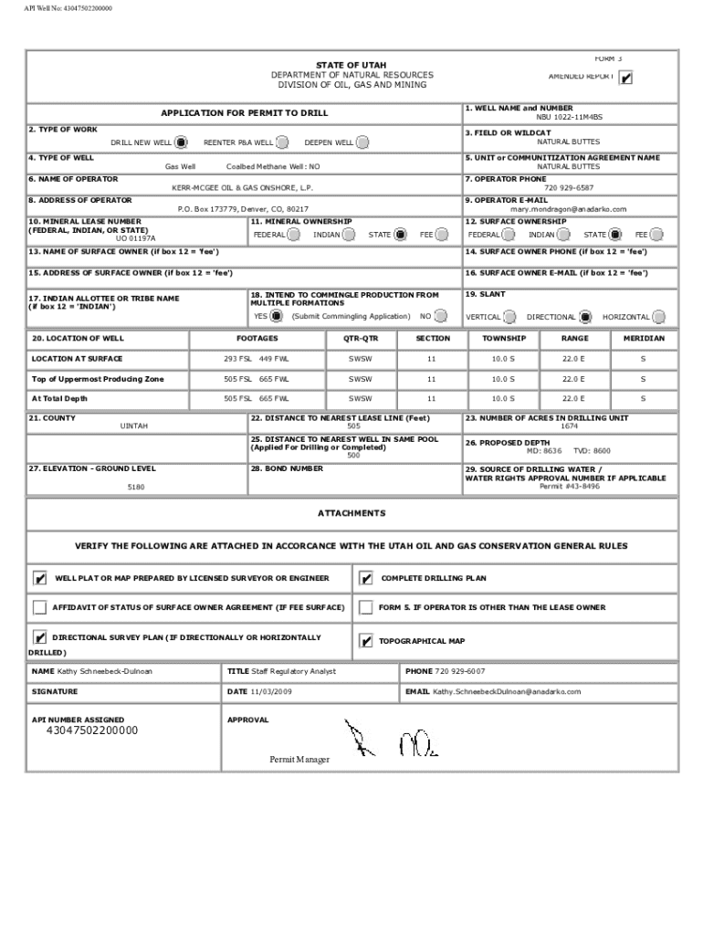 Well No: API API Well No: 43047502200000 43047502200000EORM 3 FORM FORM 3STATE OF OF UTAH UTAH STATE DEPARTMENT DEPARTMENT OF NATURAL RESOURCES NATURAL RESOURCES DIVISION OF OIL, MINING GAS AND MINING