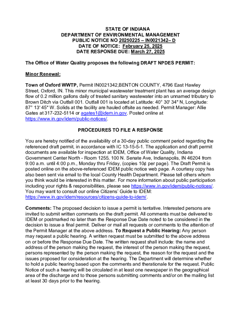 Get the free Npdes Permit Renewal for Town of Oxford