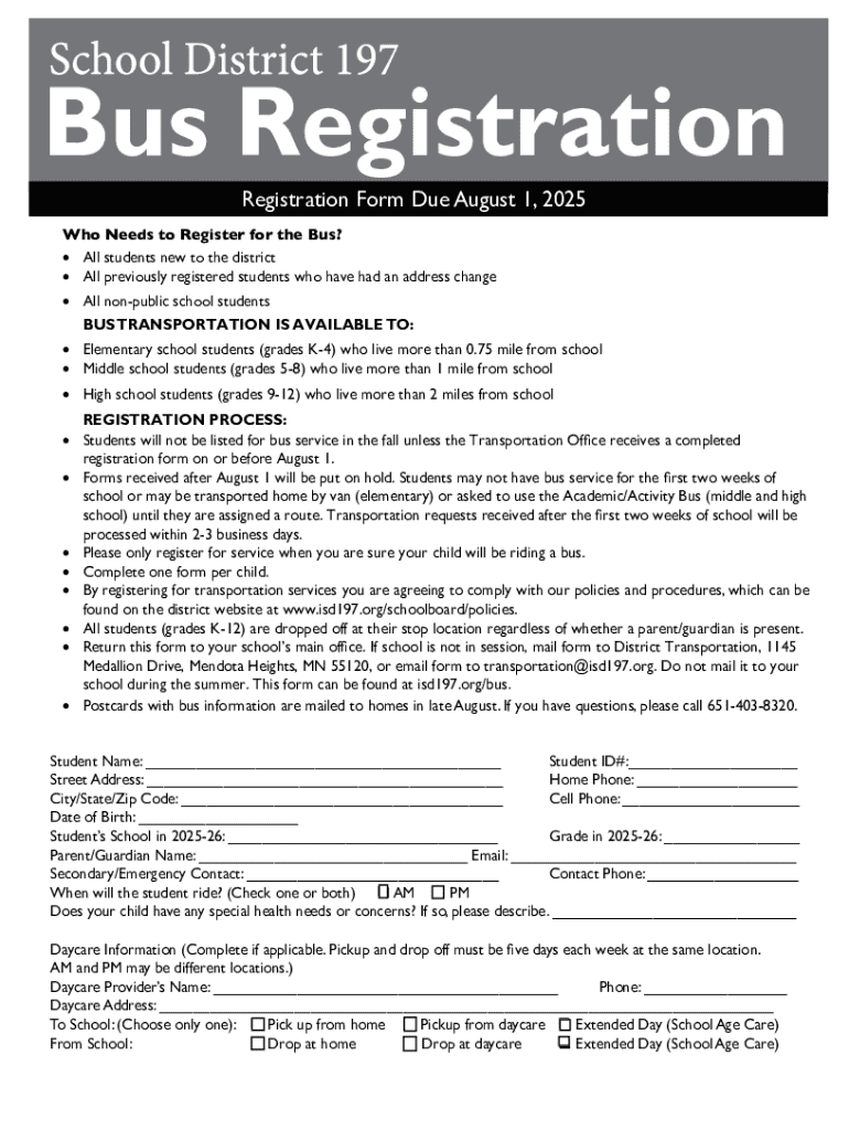 Before diving into the bus registration form, it’s essential to know who needs to register. Primarily, all students attending public schools must be registered for bus services, especially those eligible for transportation based on district policies. Out-of-district students may have special requirements that you'll need to meet before registration.