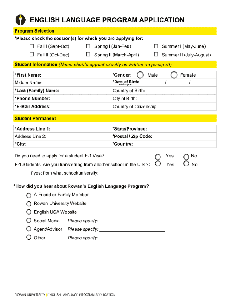 Get the free English Language Program Application