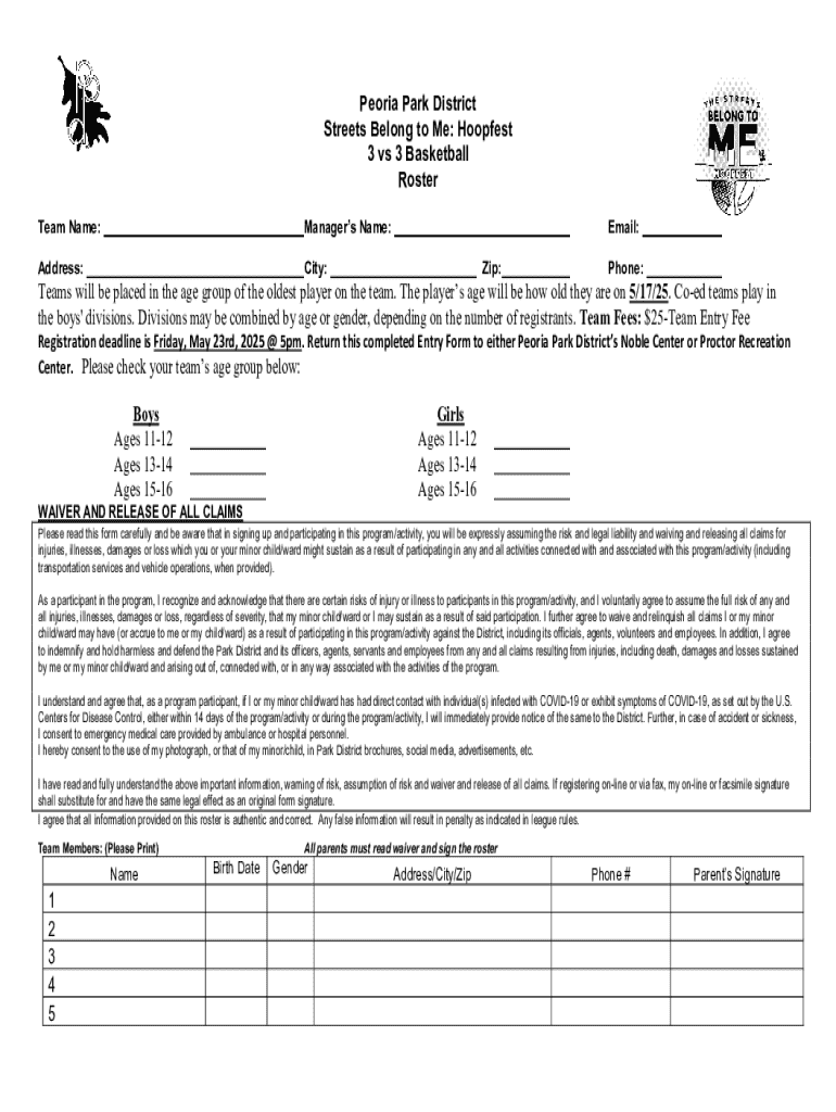 Get the free Peoria Park District Streets Belong to Me: Hoopfest 3 Vs 3 Basketball Roster