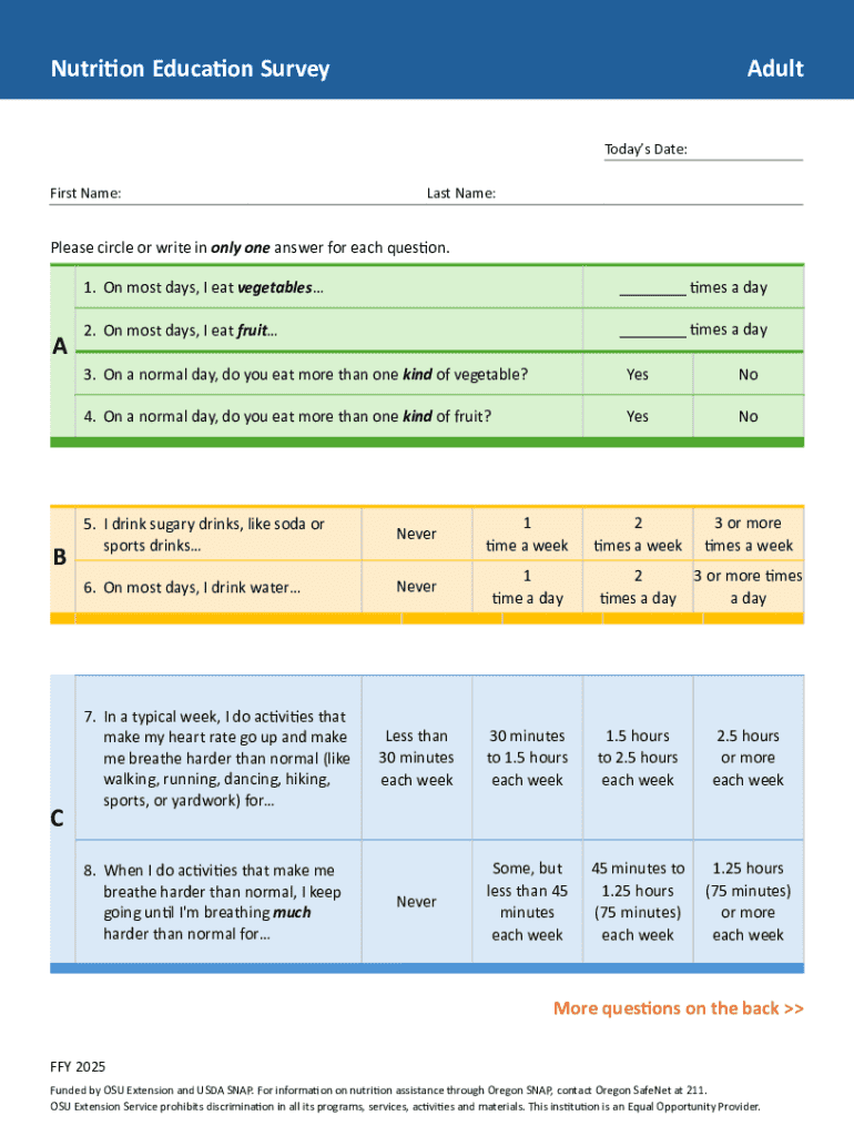 Get the free Nutrition Education Survey